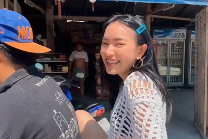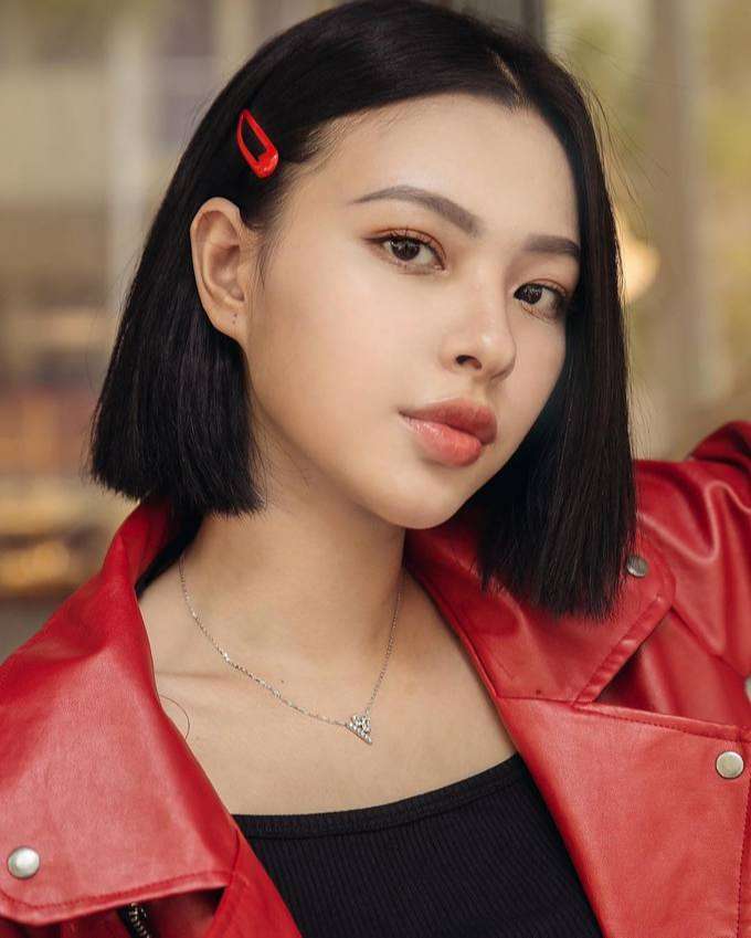 Hotgirl Châu Bùi khéo léo chọn kẹp tóc màu xanh biển, giúp mái tóc thêm nổi bật, bắt mắt.