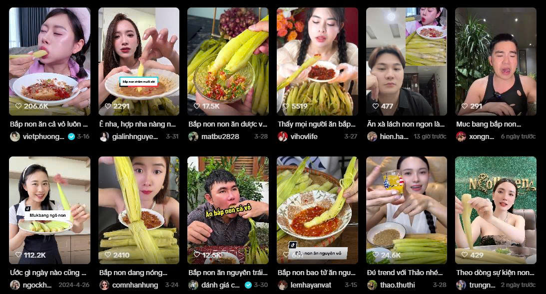 Món bắp non ăn nguyên trái được lan truyền nhiều trên các nền tảng MXH – Ảnh chụp màn hình
