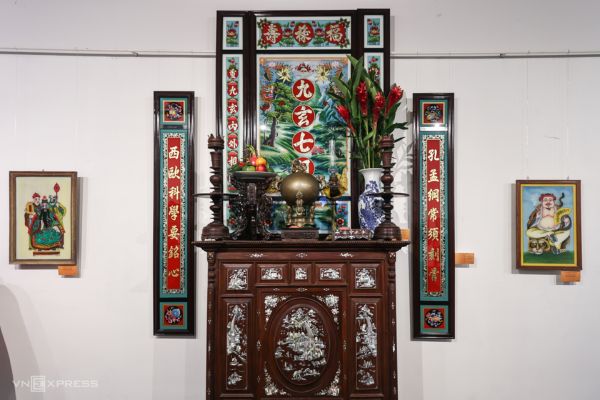 Để tạo không khí cho du khách có thể thưởng thức triển lãm một cách trọn vẹn, ban tổ chức đã bố trí và mô phỏng hẳn các bàn thờ gia tiên gắn liền với các gia đình Nam Bộ xưa, phía sau treo những bức tranh dân gian kính thờ cửu huyền thất tổ một cách trang nghiêm. Các tác phẩm tại triển lãm cũng được sử dụng kỹ thuật sơn lạnh và vẽ ngược.