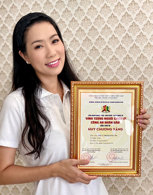 Trịnh Kim Chi rạng rỡ bên cạnh giải thưởng Huy chương Vàng tại “Liên hoan Sân khấu chuyên nghiệp toàn quốc 2020”.