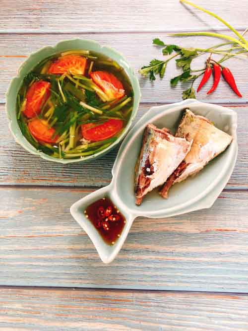 – Nấu nồi nước sôi cho cá vào nấu, cá gần chín nêm gia vị lại vừa ăn cho cà chua vào nấu cùng. Cá chín cho hành cần vào tắt bếp, cho ít dầu ăn vào sau cùng nếu thích. Món canh dùng với cơm nóng.