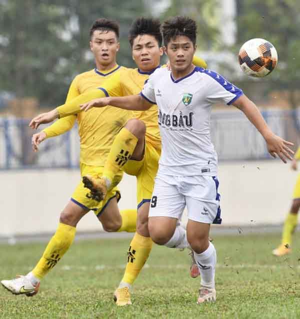 Cao Hữu Phúc cũng không thể vượt qua sự truy cản của đội bóng xứ Nghệ