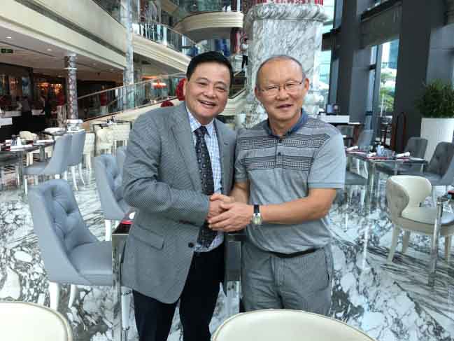 Nhà báo Nguyễn Công Khế và HLV Park Hang-seo tại buổi giao lưu