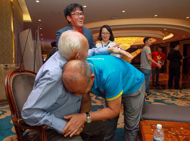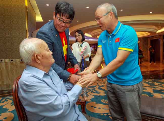 Nhà cầm quân người Hàn Quốc đế bắt tay và nói chuyện với ông Lê Bửu, nguyên Tổng cục trưởng Tổng cục TDTT