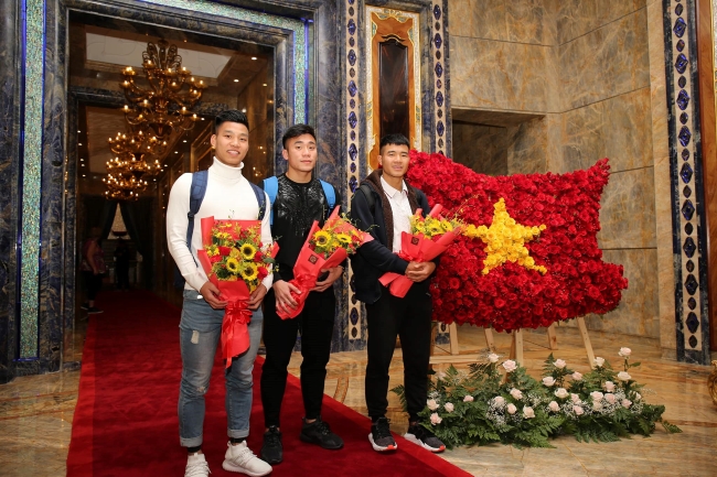 Đặc biệt là sự hiện diện của trưởng đoàn Dương Vũ Lâm, HLV trưởng Park Hang-seo, cùng các trợ lý Lư Đình Tuấn, Lê Tuấn Long, Lê Huy Khoa, bác sĩ Nguyễn Trọng Thủy, Tuấn Nguyên Giáp.