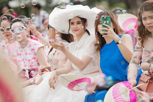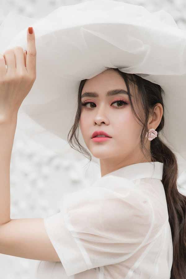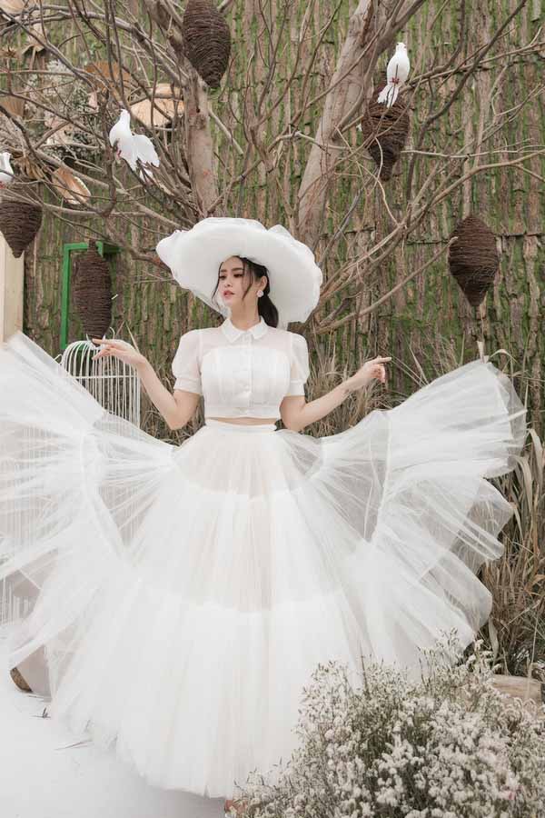 Được chính NTK Nguyễn Minh Công lựa chọn cho bộ trang phục màu trắng nổi bật, Trương Quỳnh Anh khiến mọi ánh nhìn đều hướng về mình khi chiếc đầm xoè ấn tượng kết hợp với nón rộng vành khác lạ. Diện cả “cây” trắng muốt, nữ ca sĩ như cô tiên lạc vào không gian cổ tích cùng các em nhỏ.