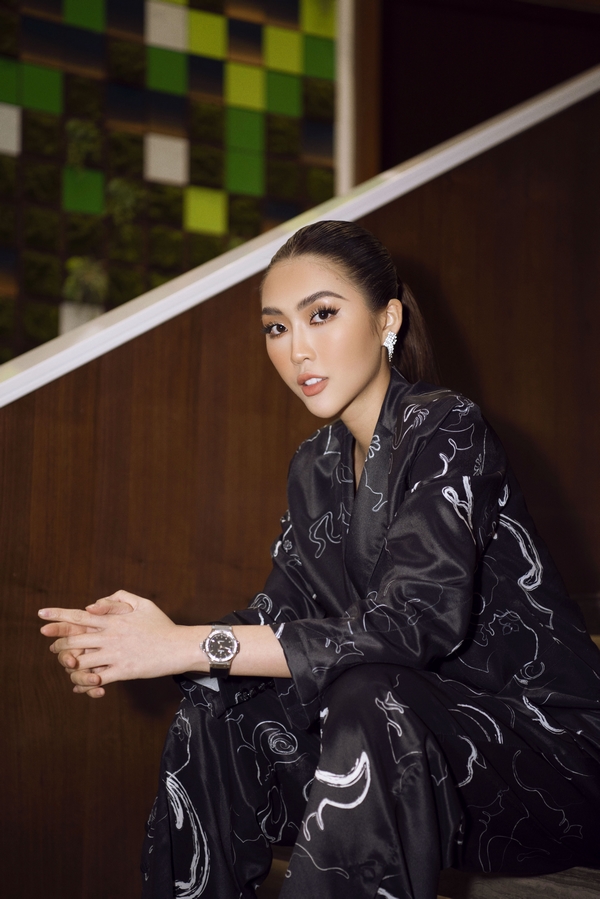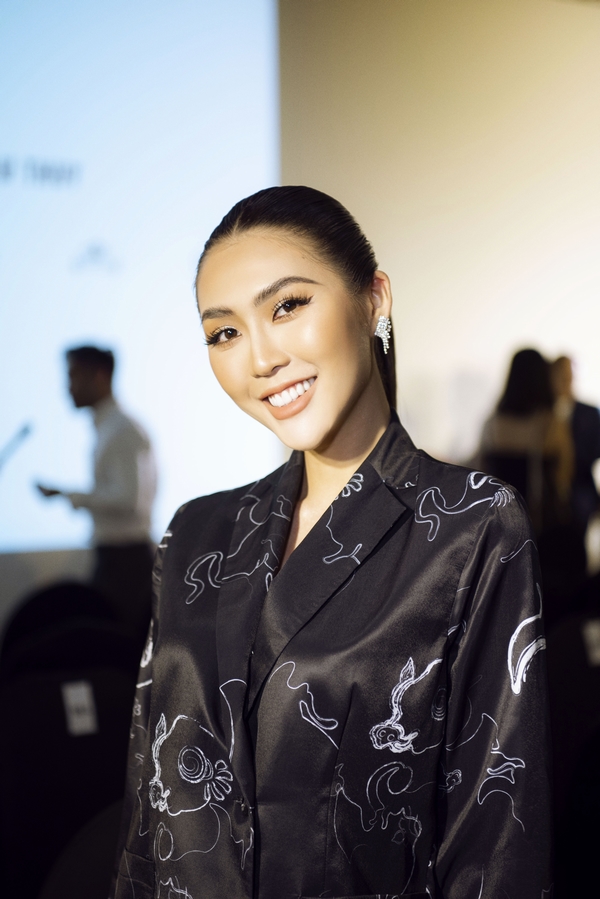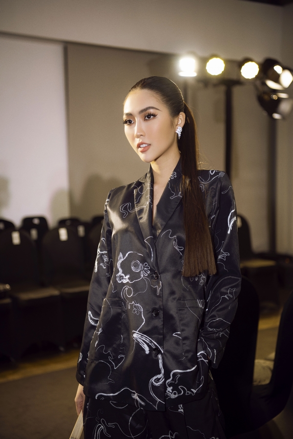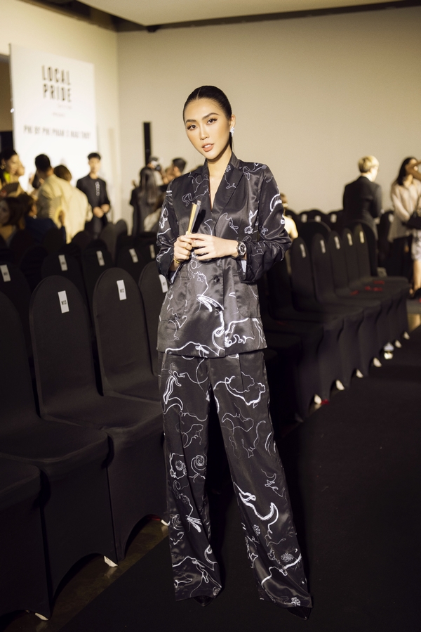 Tại sự kiện, Tường Linh diện một thiết kế lấy cảm hứng từ trang phục Pyjama với cổ bẻ, dáng vuông cùng quần suông. Thiết kế với chất liệu lụa bóng mềm mại giúp Tường Linh vẫn khoe được vẻ nữ tính, gợi cảm. Cô mang theo quạt giấy kết hợp cùng set đồ tạo nên một hình ảnh Á đông thú vị.