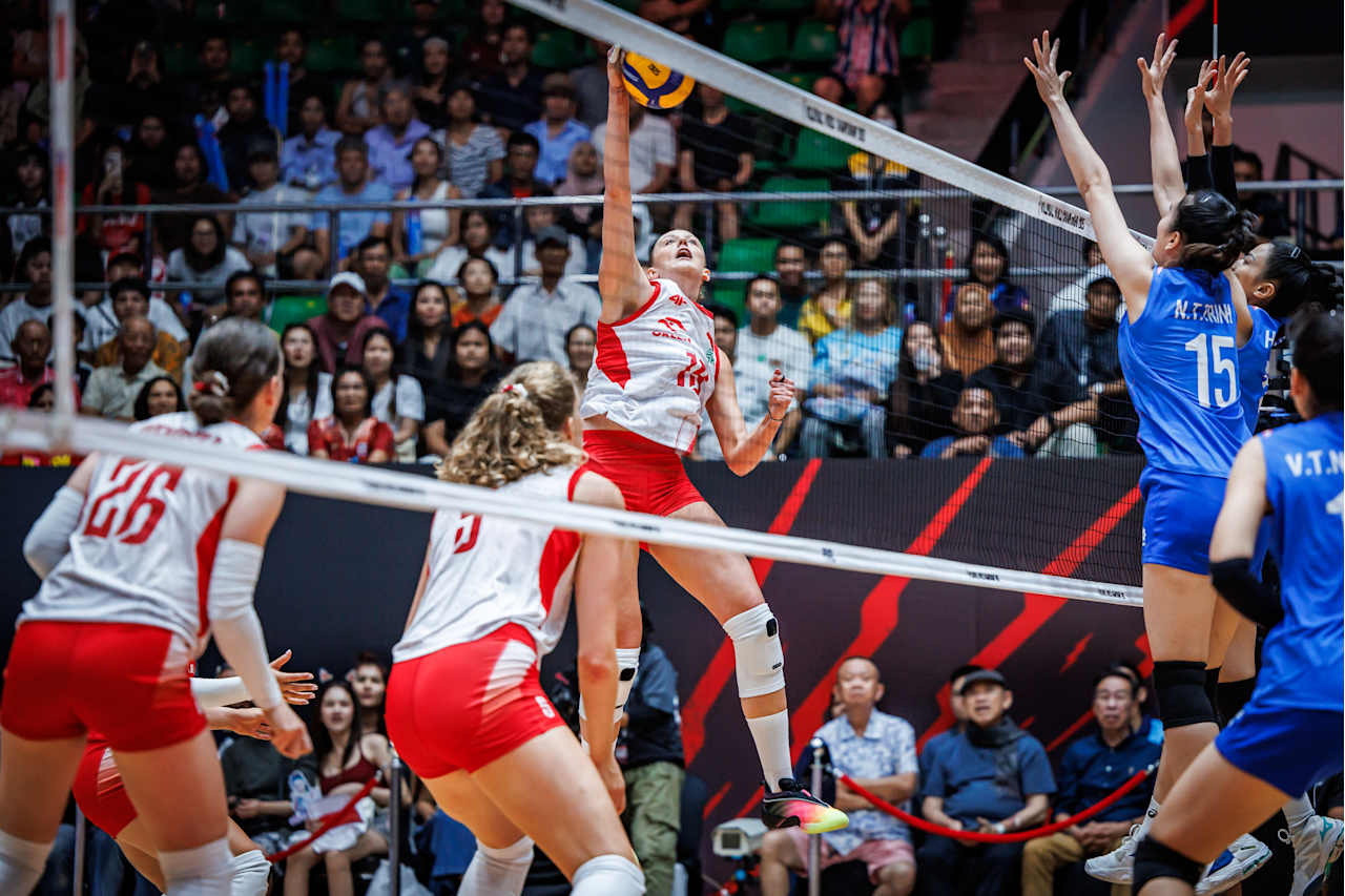 Sau set thua đầu tiên, các cô gái Ba Lan tỏ ra quá mạnh trong phần còn lại của trận đấu trước Việt Nam. Ảnh: FIVB