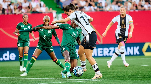 Tuyển nữ Đức vực dậy tinh thần sau 2 bàn thua liên tiếp. Đến phút bù giờ, các học trò của Martina có được 2 bàn gỡ hòa nhờ pha lập công của Lea Schuller (90+1) và Alexandra Popp (90+10). Khi chỉ còn vài phút nữa là kết thúc trận đấu thì tuyển nữ Zambia lại có pha “nhả đạn” làm rung lưới của các cổ xe tăng Đức. Đáng chú ý, bàn thua cuối của tuyển nữ Đức trước Zambia lại khá giống với bàn thua phải nhận ở trận giao hữu với Việt Nam khi cả 2 tình huống dẫn đến bàn thắng đều là sự bứt tốc từ sân nhà của tiền vệ đối phương.