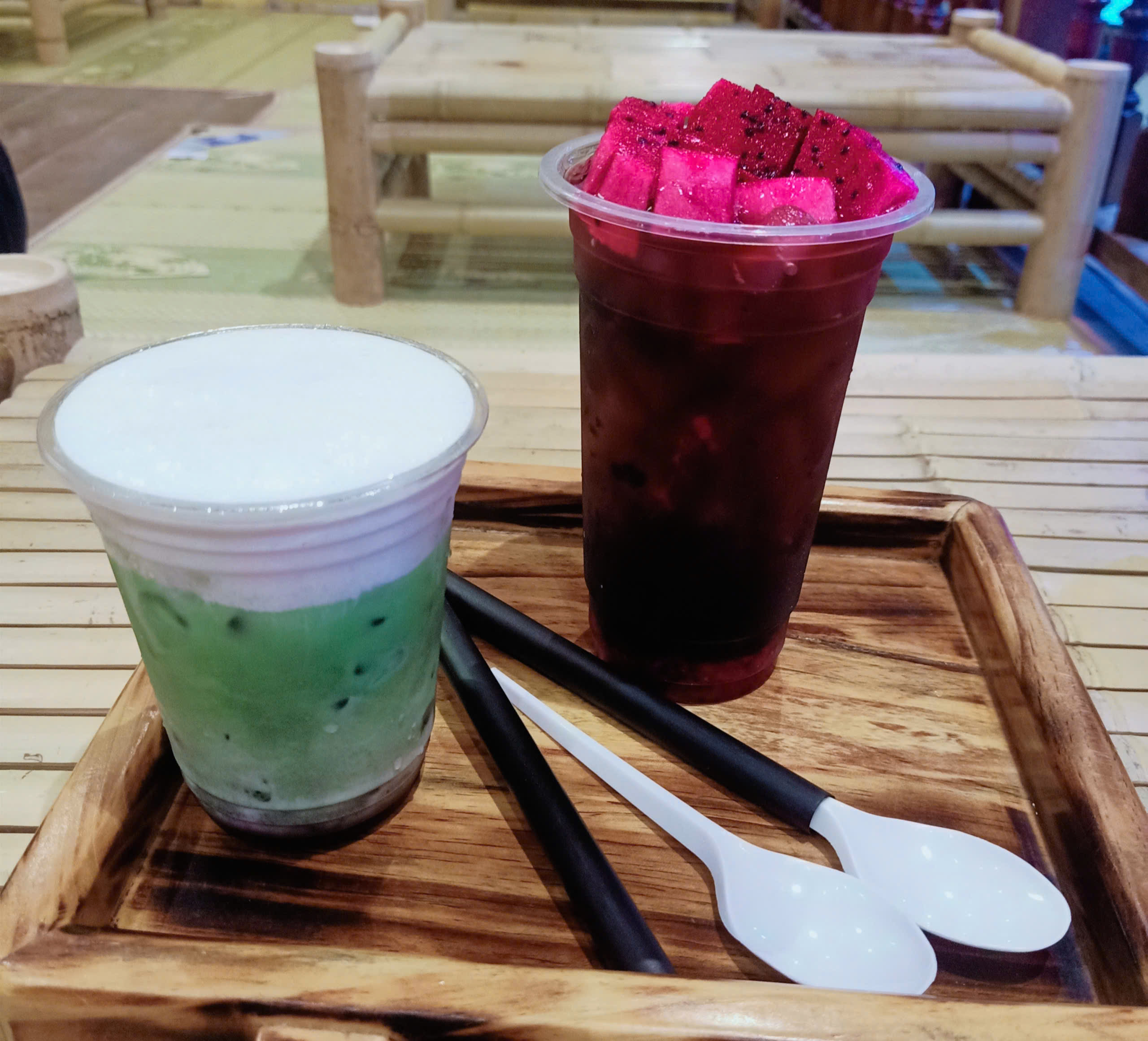 Menu của quán cũng rất đa dạng, phong phú, có thể kể đến như coffee caramel, cacao sữa dừa, trà đào cam quế, các loại nước ép, sinh tố tươi mát. Bên cạnh đó, còn có các món ăn vặt hấp dẫn không thể bỏ lỡ như xiên que thập cẩm, khoai tây lắc phô mai, hoành thánh chiên,… Giá đồ ăn chỉ dao động từ 30.000đ – 55.000đ rất phù hợp để khách trải nghiệm. Tôi đã gọi một ly trà Matcha Thái đậu đỏ. Hương trà thơm dìu dịu thoang thoảng cả không gian, vị trà ngọt vừa vặn, lớp kem béo béo kết hợp với những hạt đậu đỏ được ninh nhừ bùi bùi. Tất cả hoà quyện vào nhau đem đến cảm giác thật tuyệt vời.