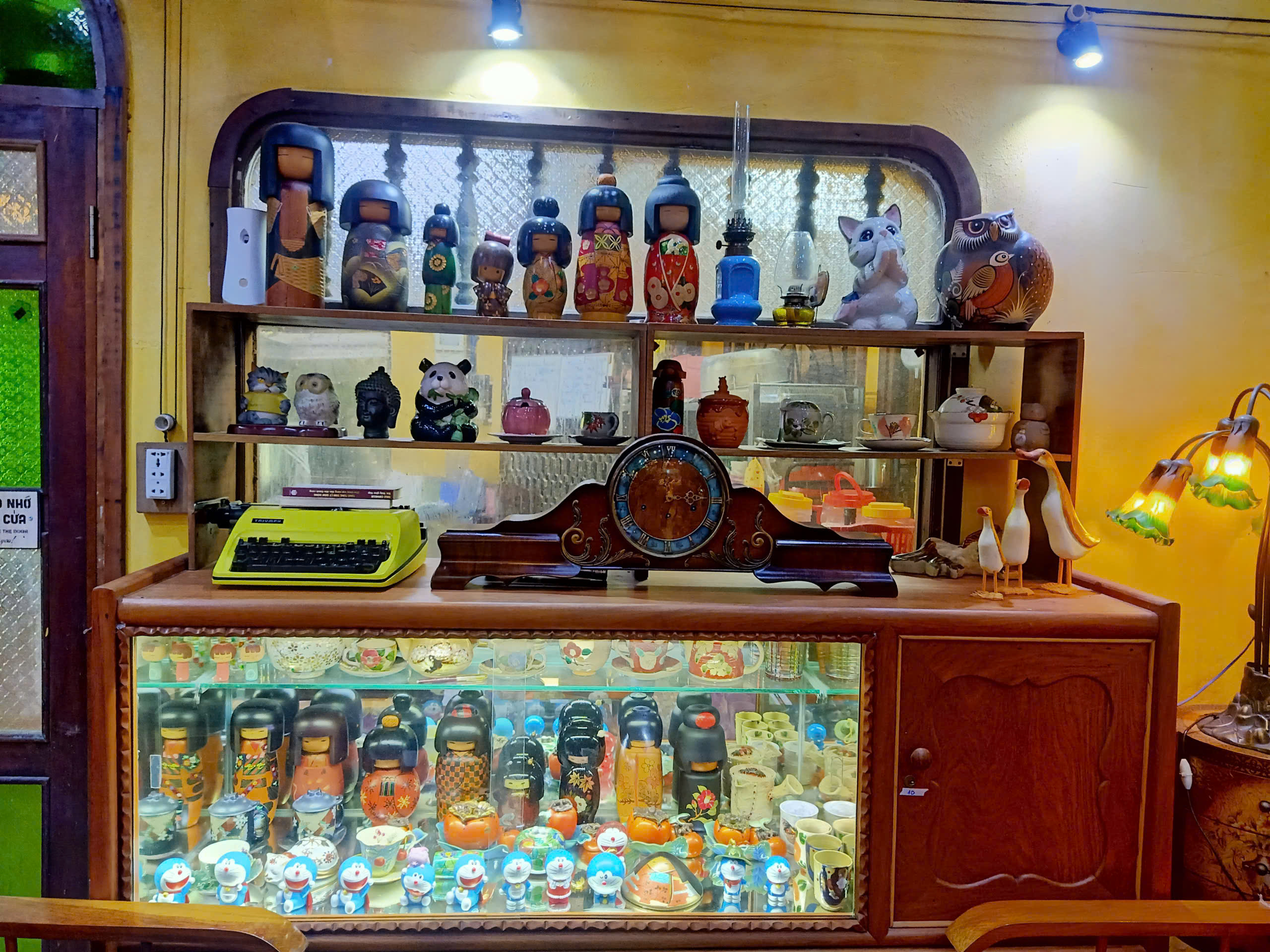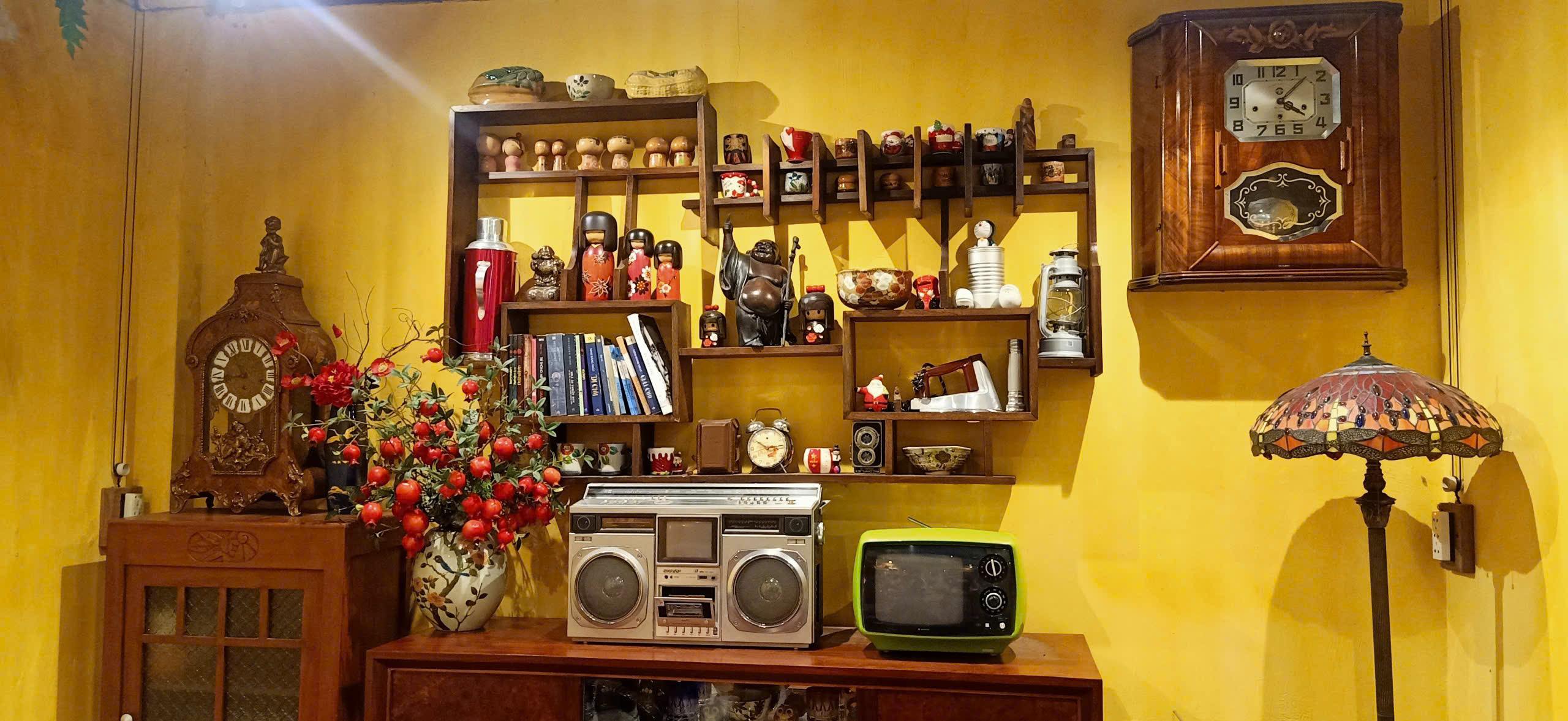 Quán có nhiều không gian với cách bài trí khác nhau nhưng đều mang nét cổ điển, phai mờ theo năm tháng. Ngắm nhìn từng món đồ, tôi bồi hồi, xúc động nhớ về tuổi thơ của mình. Trong miền ký ức, cũng bộ bàn ghế gỗ cũ kỹ, chiếc đài cassette rè rè mỗi khi chuyển kênh, chiếc máy đánh chữ cọc cạch, chiếc đèn dầu lập lòe trong đêm đông, bộ tách chén, ấm trà cũ mà ông ngoại hay dùng,…tất cả đều gợi về những điều đặc biệt thân thương. Tôi ấn tượng nhất là chiếc ti vi trắng đen thường xuyên bị nhiễu sóng mà ngày ấy người lớn phải leo lên tít tận nóc nhà để xoay cần ăng ten, còn lũ trẻ thì ở dưới xúm xít lại reo hò, chỉ dẫn. Sau một hồi loay hoay vất vả, mọi người cùng ồ lên mừng rỡ khi ti vi lên hình. Đó là những kỷ niệm mà có lẽ suốt cuộc đời này tôi không bao giờ quên.