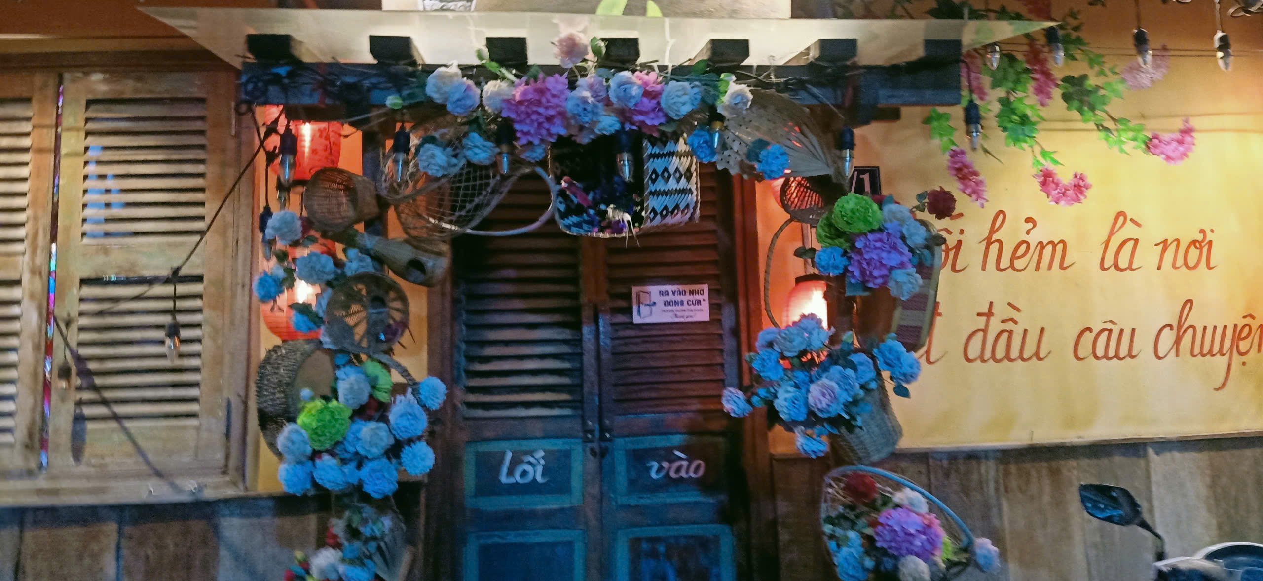 Không ồn ào, xô bồ, tấp nập, Ú Cà Phê Kokeshi mang đến sự yên tĩnh, nhẹ nhàng. Tường được sơn màu vàng nhạt làm nổi bật nên dòng chữ màu đỏ: “Cuối hẻm là nơi bắt đầu câu chuyện.”, những chiếc đèn lồng được treo xung quanh quán tỏa ra hơi ấm dìu dịu, đung đưa trong gió. Chiếc cửa gỗ dẫn vào quán được trang trí nhiều hoa tươi màu sắc rực rỡ khiến mỗi vị khách ghé thăm đều tò mò muốn mở ngay ra để khám phá thế giới ẩn giấu bên trong.