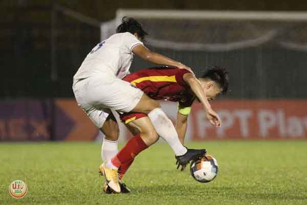 Đến phút bù giờ, Trần Đàm Phúc Thịnh bị cầu thủ đối phương phạm lỗi trong vòng cấm và Việt Nam được hưởng quả đá phạt đền trên chấm 11m.