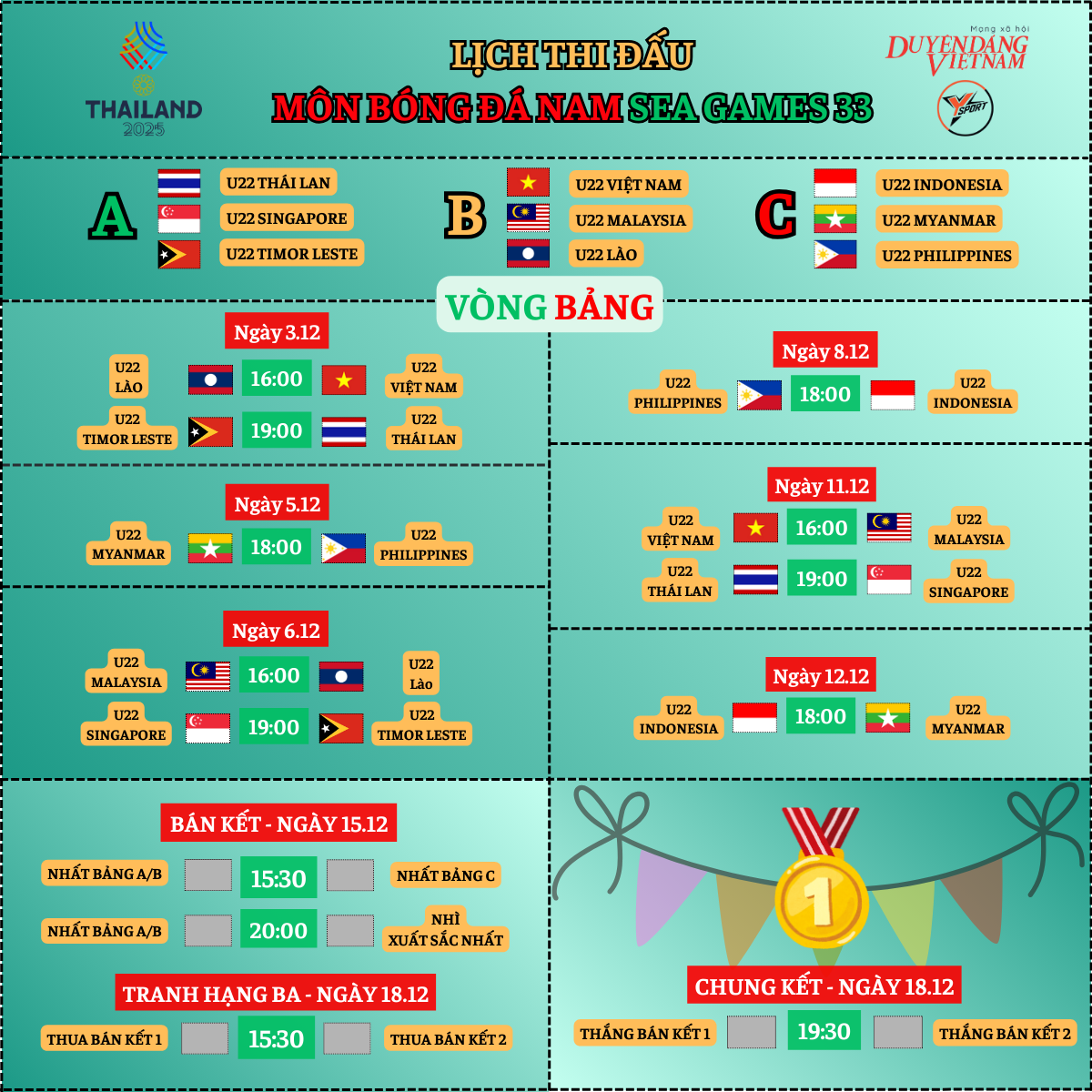 *Chi tiết lịch thi đấu môn bóng đá nam SEA Games 33