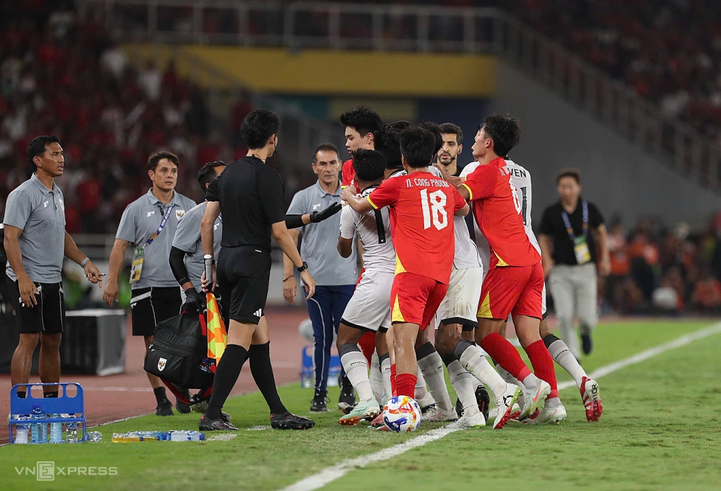 Hai đội liên tục có những tình huống mâu thuẫn trên sân. Ảnh: VnExpress