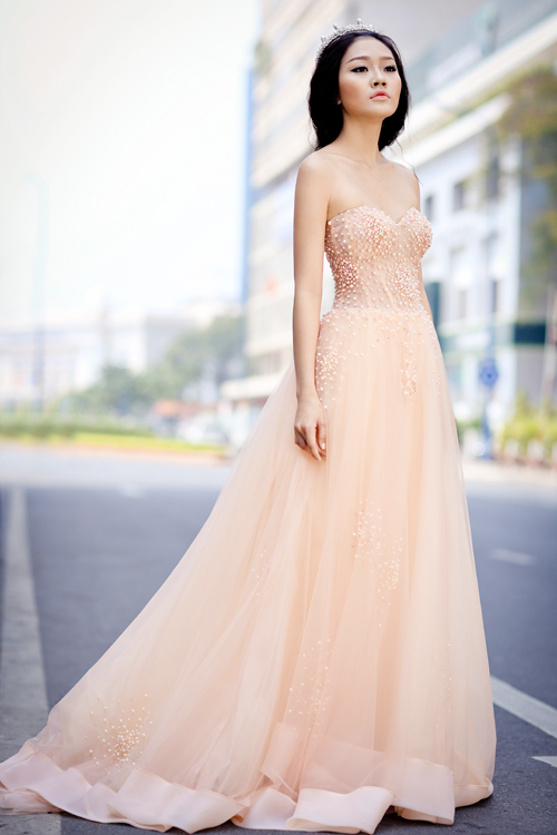 Stylist Cindy Nguyễn bày tỏ quan điểm: ”Bản thân màu nude là màu tôn da, nên người mặc nhìn tươi tắn hơn. Thường loại váy màu này được trang trí bằng ren, bèo nhún… các chi tiết trang trí cũng đồng màu với váy, hiếm thấy chất liệu sequin hay các loại hạt màu sắc nổi bật đính lên, nếu có cũng chỉ trên một mảng nhỏ và màu sắc nhã nhặn làm cho chiếc váy cưới màu nude thêm thanh lịch.