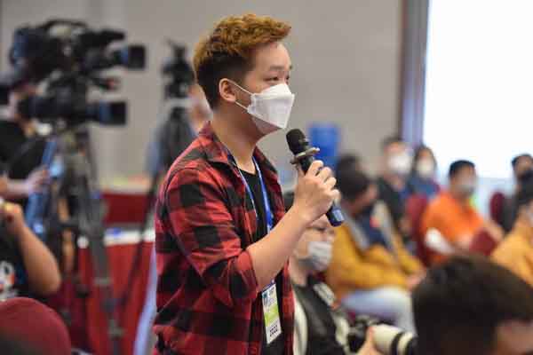 Phóng viên Duy Anh của báo Soha phát biểu