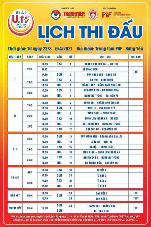 Lịch thi đấu VCK giải U.19 quốc gia 2022: