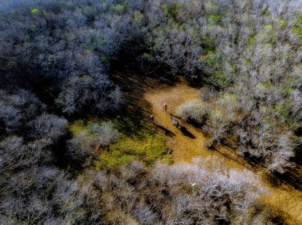 Mùa hè, Rú Chá chỉ có mặt đất khô nứt và cây rừng xanh lá chứ không còn đầm nước.