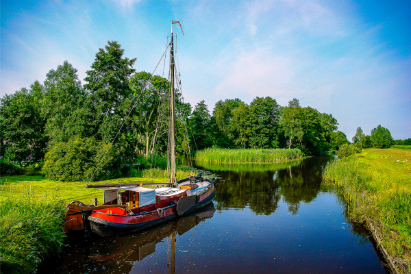 Giethoorn được bao phủ bởi ngàn lớp cây tươi xanh mát, như một khu vườn của xứ sở thần tiên. Sự yên bình, an nhiên nơi đây như một “liều thuốc detox” cho những tâm hồn đang phải hối hả, vội vã chạy đua với nhịp sống thành thị. Dù du lịch rất phát triển, ngôi làng 700 năm tuổi này vẫn giữ được cho mình sự cổ kính và mộc mạc vô cùng đáng quý. Giethoorn yên bình, không tồn tại tiếng ồn và khói bụi. Thuyền được xem là phương tiện di chuyển chính ở đây, chúng được gọi bằng một cái tên đậm chất thơ là “whisper boat” – chiếc thuyền thầm thì vì sử dụng loại động cơ máy mà tiếng động cơ còn nhỏ hơn cả lời bạn thầm thì.
