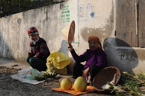 Người quê có gì thì bán nấy, đôi khi gian hàng của họ chỉ có hai quả bưởi