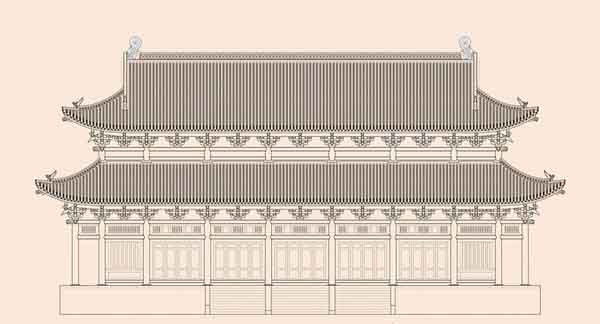 Hình ảnh điện Kính Thiên do Viện Nghiên cứu kinh thành tái hiện
