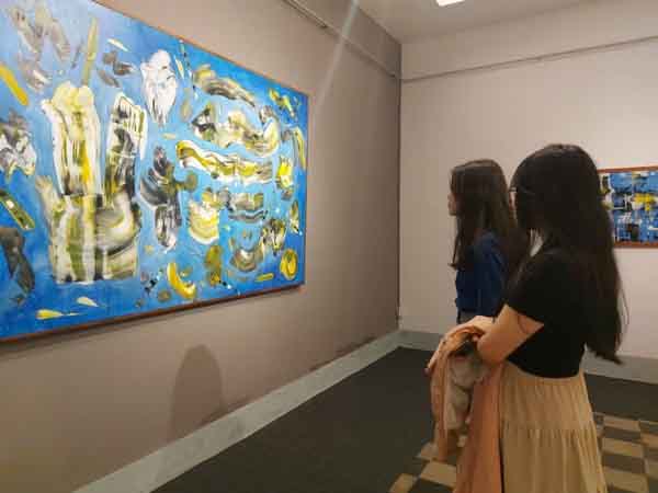 Các bạn trẻ đến xem triển lãm “Giấc mơ siêu thực” của họa sĩ Đinh Phong tại Bảo tàng Nghệ thuật TP.HCM.