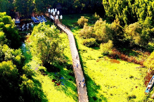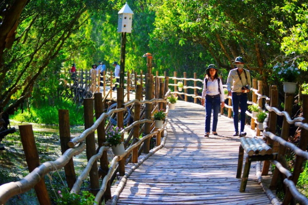 Hiện, cầu đã đưa vào sử dụng 4.000 mét (giai đoạn 1) từ đầu năm 2020, thu hút rất nhiều du khách trong và ngoài nước. Được tạo thành từ hơn 500.000 cây tre các loại, cây cầu tre vạn bước có thiết kế cách điệu tựa “Rồng trúc bạch” giúp du khách khám phá trọn vẹn cảnh quan thiên nhiên nguyên sinh trù phú ở “Bảo tàng Tràm nhiệt đới”.