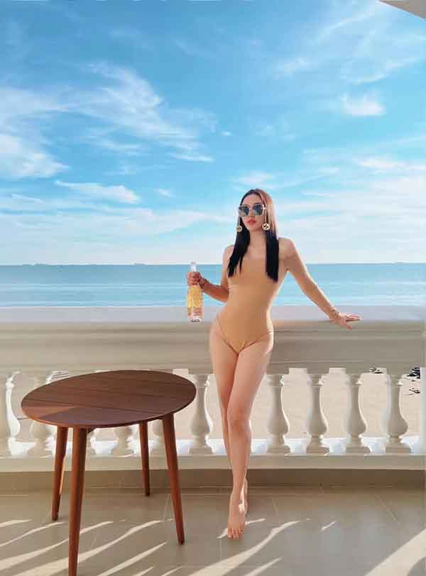Có thể thấy, khi diện đồ tắm một mảnh màu nude và ôm sát cơ thể, nữ ca sĩ đã khoe triệt để sắc vóc trẻ trung cùng thân hình thon gọn, nóng bỏng. Nhan sắc xinh đẹp nức nở và thần thái đỉnh cao của Bảo Thy khiến bao người không khỏi xuýt xoa.