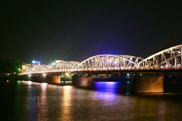 Cầu Trường Tiền, cây cầu đầu tiên bắc qua sông Hương, được xây dựng từ năm 1897, một nét duyên dáng của xứ Huế.