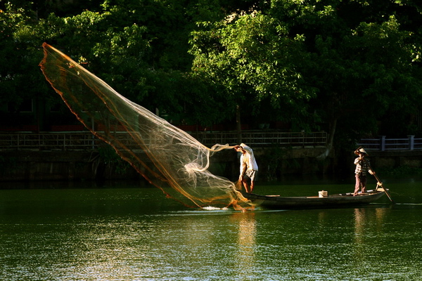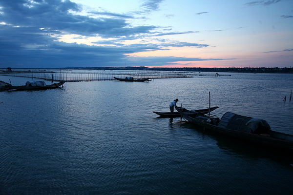 Chiều buông trên phá Tam Giang. Đầm phá là một “đặc sản” của xứ Huế mà không nơi nào có được. Đó là cảnh đẹp tuyệt vời của thiên nhiên xen lẫn với đời sống con người. Hệ thống đầm phá Tam Giang – Cầu Hai ở Huế là hệ thống đầm phá lớn nhất Đông Nam Á.