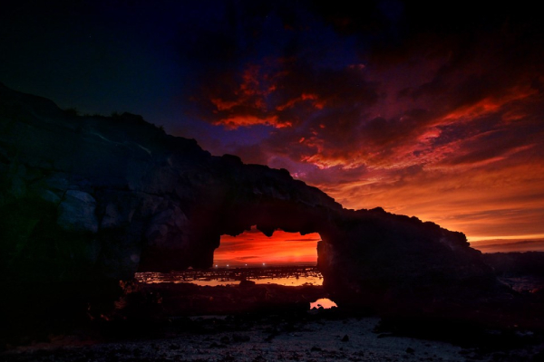 Buổi chiều ghé qua cổng Tò Vò lội nước, trò chuyện với mấy đứa trẻ trên đảo, chọn mua vài món đồ thủ công làm quà lưu niệm, bày đủ kiểu dáng chụp ảnh lưu niệm hoặc xem các nhóm du khách kéo nhau trèo lên trên cổng Tò Vò chụp hình “wefie” tập thể, trong khi đợi ngắm hoàng hôn. Cách cổng Tò Vò chỉ gần 200m là chùa Đục, còn được biết đến với tên gọi khác là Chùa Không Sư, một trong những điểm đến tâm linh không thể bỏ lỡ của đảo. Từ sân chùa, bạn có thể thu trọn vào trong tầm mắt hình ảnh của đảo Bé và biển xanh rộng lớn.