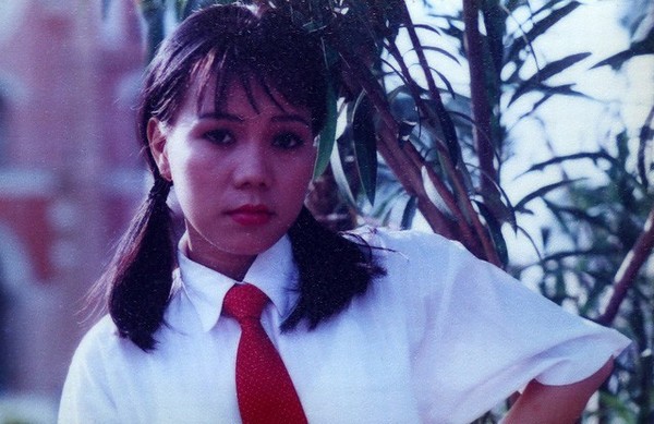 Việt Hương thời thanh xuân với mái tóc ngang vai được thắt bím hai bên.