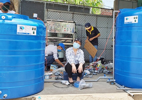 Việt Hương hào hứng có mặt tại nơi lắp đặt máy lọc nước tại tỉnh Bến Tre.