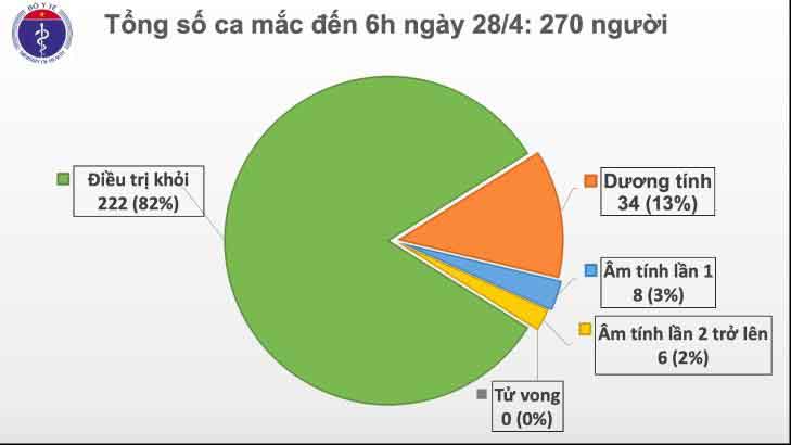 Trong số đó: Điều trị khỏi và ra viện là 222 người. Còn 48 người đang điều trị tại 9 cơ sở khác, có 38 ca trong số này điều trị bệnh viện tuyến trung ương, số còn lại điều trị tuyến tỉnh và huyện.