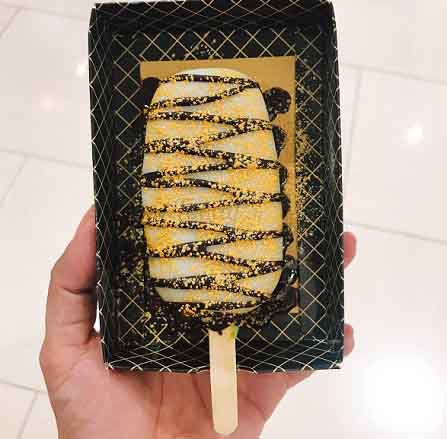 Hiện nay, món kem dát vàng đã có mặt ở Việt Nam rồi đấy. Ngay tại thành phố Hồ Chí Minh, bạn có thể đến Takashimaya để thưởng thức cây kem này với giá 150 ngàn.