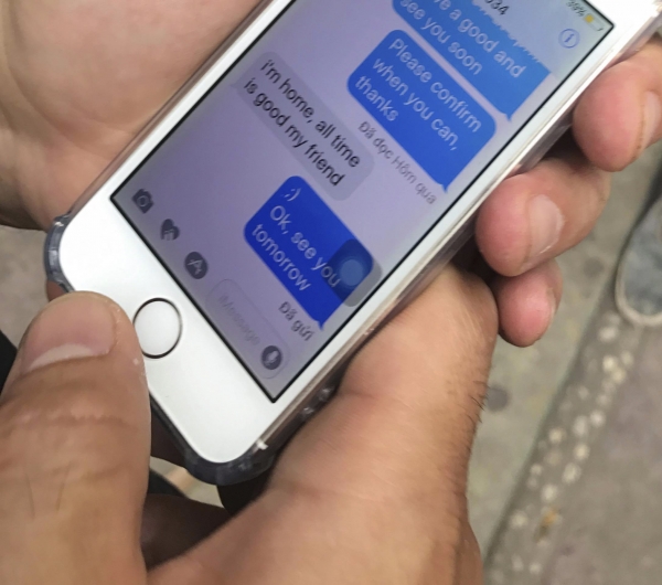 Để chứng minh mình đã hẹn với Johnny Trí Nguyễn, ông Flores khoe tin nhắn trò chuyện với Johnny. Trong đó, nam diễn viên có dòng trả lời là “tôi ở nhà và có thể gặp bất cứ lúc nào”.