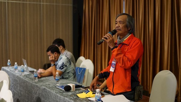 Nhà báo Dư Hải đặt câu hỏi giành cho BTC giải – Ảnh: QS