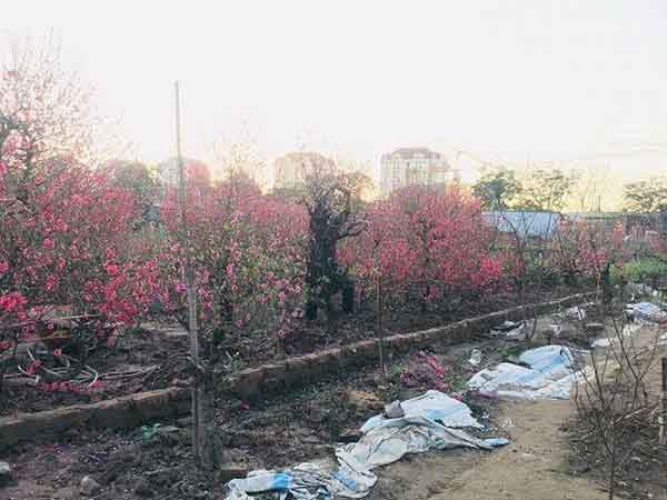 Bác buồn bã nói: “Cây đào đẹp vậy mà không có ai mua. Ngày 30 Tết là chúng tôi đã phải cắt hết cành, bán được cành nào thì bán còn đâu thì cũng vứt hết. Năm nay kinh tế khó khăn, dịch COVID-19 bùng phát khiến nhiều nơi cách ly, người dân cũng hạn chế ra ngoài nên để bán được thì cũng phải hạ giá kịch sàn may ra mới có người mua, chứ còn để giá như năm ngoái thì không có khách”.