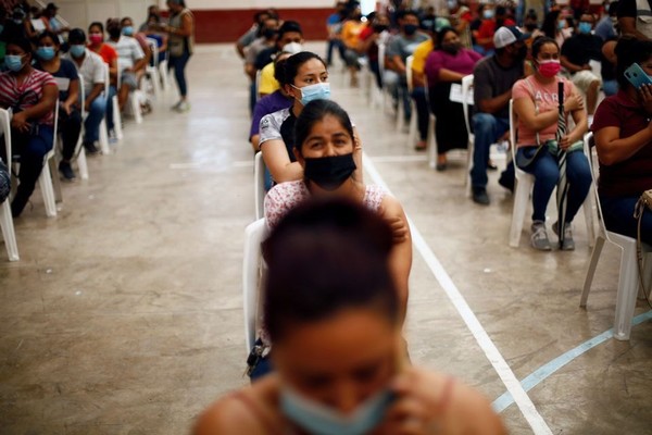 Người dân chờ đợi sau khi nhận một liều vắc xin Pfizer-BioNTech trong chương trình tiêm chủng hàng loạt cho những người trên 18 tuổi ở thị trấn Praxedis G. Guerrero, Mexico ngày 10.7