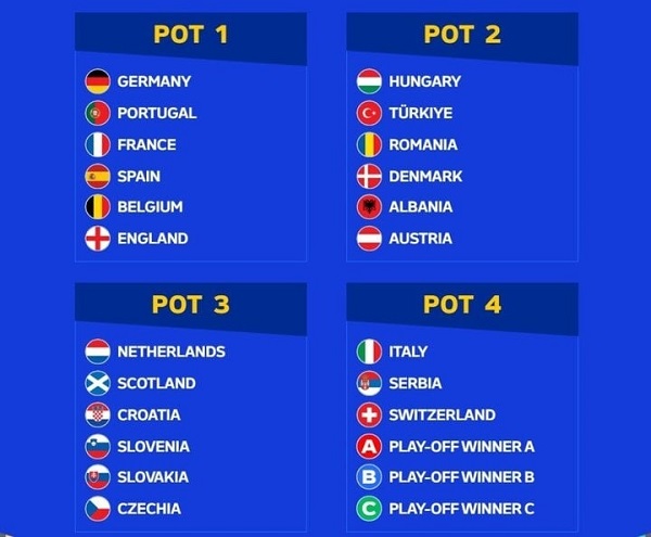Phân nhóm hạt giống cho 24 đội tham dự VCK Euro 2024. (Ảnh: UEFA)