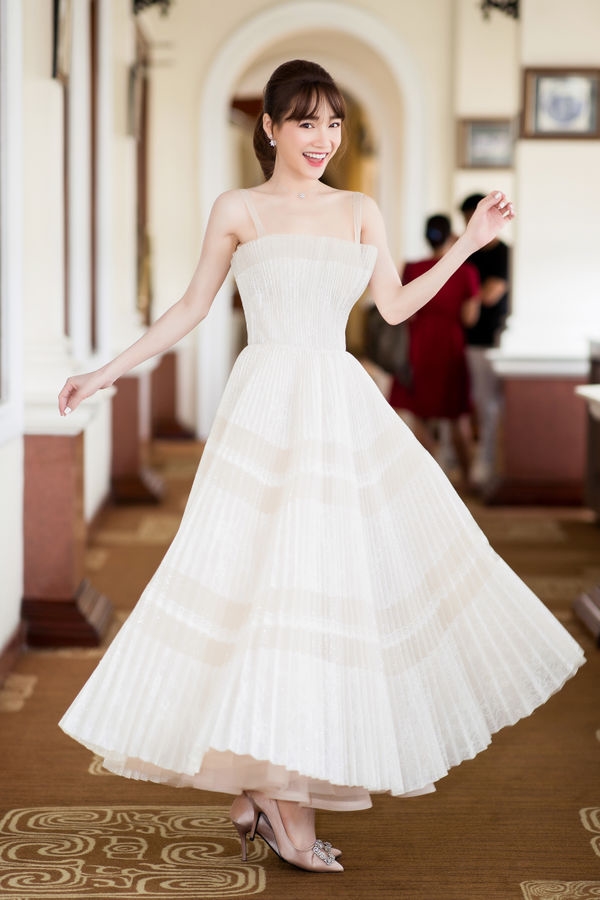 Tại sự kiện diễn ra tối 20/8, bà xã Trường Giang tiếp tục ghi điểm tuyệt đối khi diện chiếc váy trắng trang nhã nhưng vẫn không kém phần gợi cảm, cùng với lối make up và làm tóc trẻ trung.