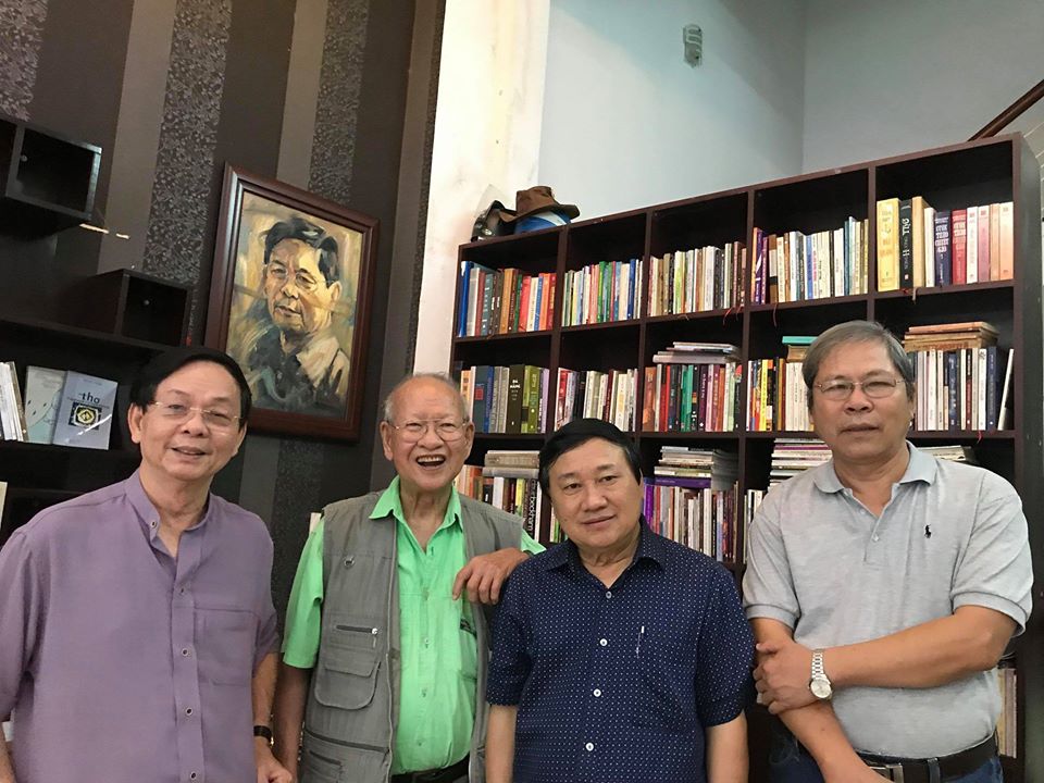 Các nhà thơ Nguyễn Văn Gia, Huỳnh Văn Hoa, nhà phê bình Đặng Tiến (Paris), Nguyễn Ngọc Hạnh từ trái qua.