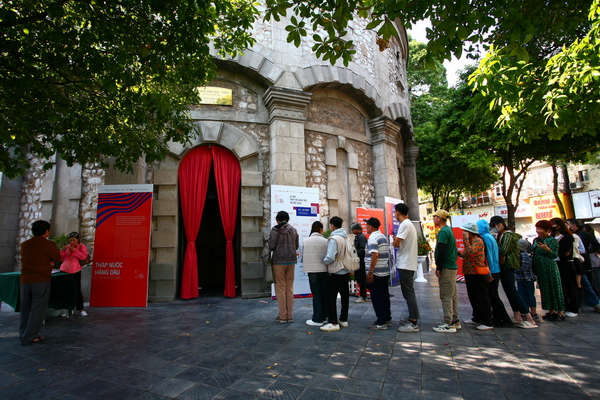 Xếp hàng dài chờ tham quan triển lãm trong Tháp nước Hàng Đậu