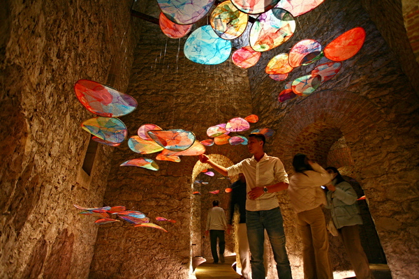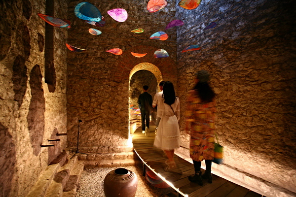 Ánh sáng và âm thanh của nước là ngôn ngữ chính của trưng bày sắp đặt, cùng những hình tượng sắc màu lơ lửng trên cao tạo nên nhiều tầng bậc không gian và cảm xúc,
