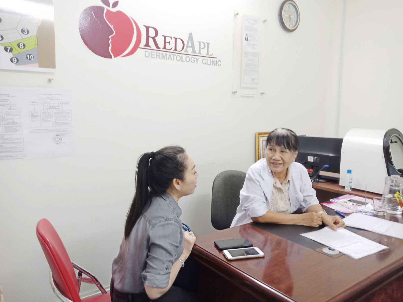 Đặc biệt, khi khách hàng đến khám bệnh, các vấn đề thẩm mỹ da và thực hiện các dịch vụ tại phòng khám Da liễu Táo đỏ RedApple. Khách hàng sẽ được tư vấn về tình trạng da hiện tại và những chuẩn đoán chính xác về bệnh của da và những vấn đề thẩm mỹ cho da.