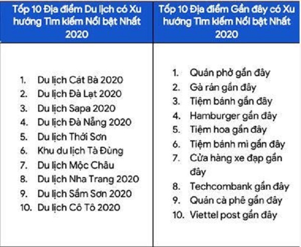 Xu hướng tìm kiếm trên Google 2020: Du lịch biển đảo lên ngôi, điện ảnh Việt nhiều điểm sáng