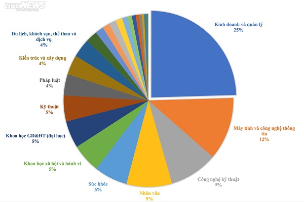 Theo thống kê tỷ lệ sinh viên trúng tuyển và xác nhận nhập học năm 2022 của bộ GD&ĐT khối ngành Quản trị kinh doanh có tỉ lệ 24.54%. Tiếp theo là các khối ngành lần lượt là Công nghệ thông tin chiếm 11.79%; Công nghệ kỹ thuật chiếm 9.18%; Nhân văn chiếm 8.68% và Sức khỏe chiếm 6.35%.