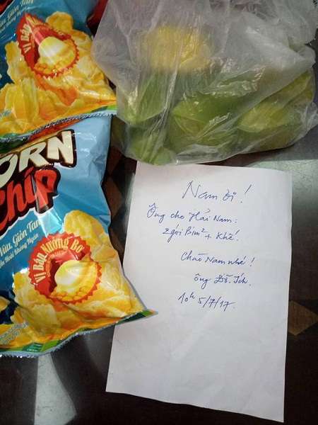 Mỗi ngày ông lại đạp xe qua nhà các cháu để dành tặng những món quà bình dị như thế này đây