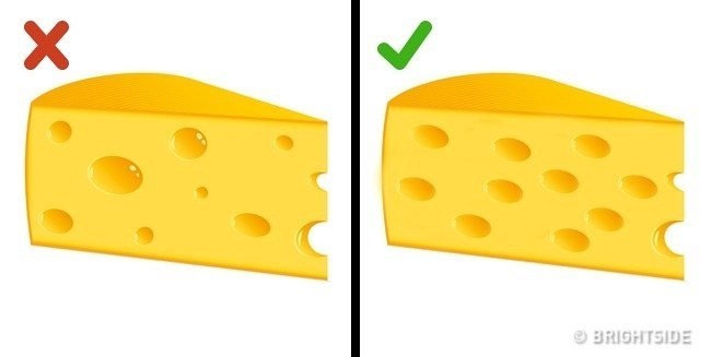 Kết cấu phô mai cứng phải đồng nhất, không có vỏ màu trắng, các lỗ phải được phân bố đều trên toàn bộ miếng.
